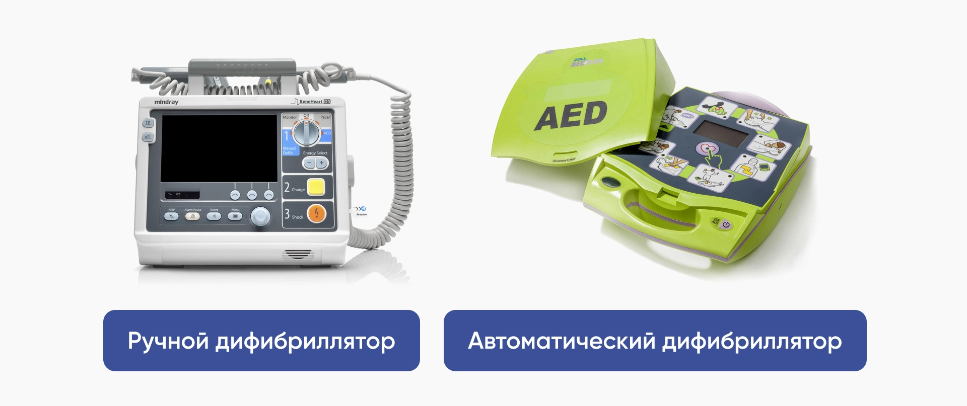 Дефибрилляторы бывают двух типов: ручные и автоматические. Ручные дефибрилляторы требуют профессиональных навыков для их настройки и применения. Такими аппаратами пользуются медицинские работники в больницах или специализированных экстренных службах.