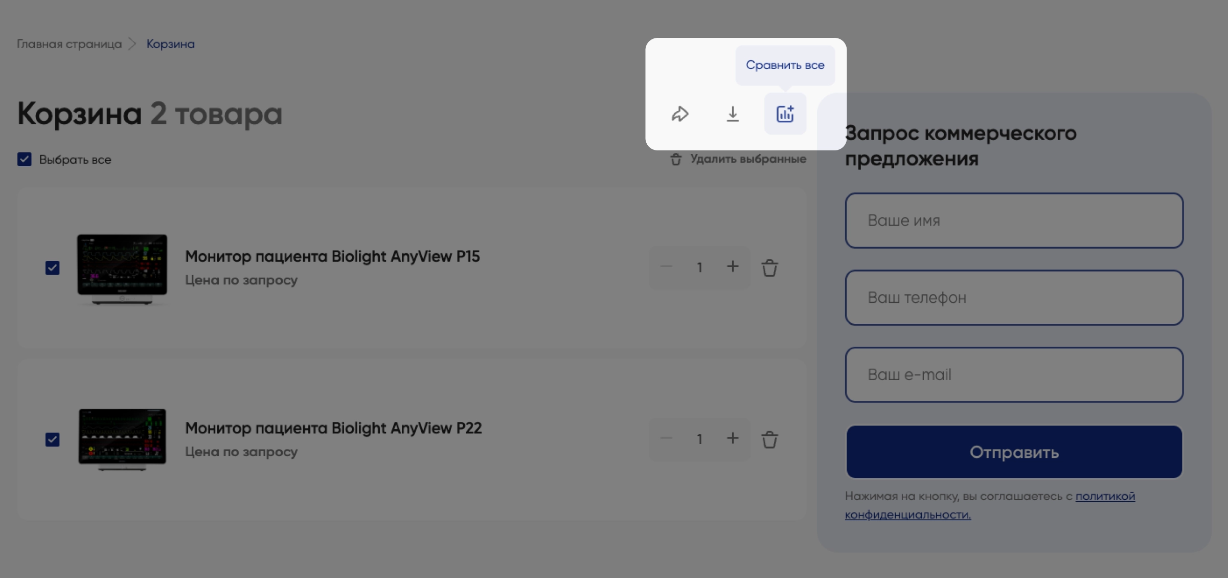 Товары в корзине можно быстро сравнить и оставить только подходящие под задачу.