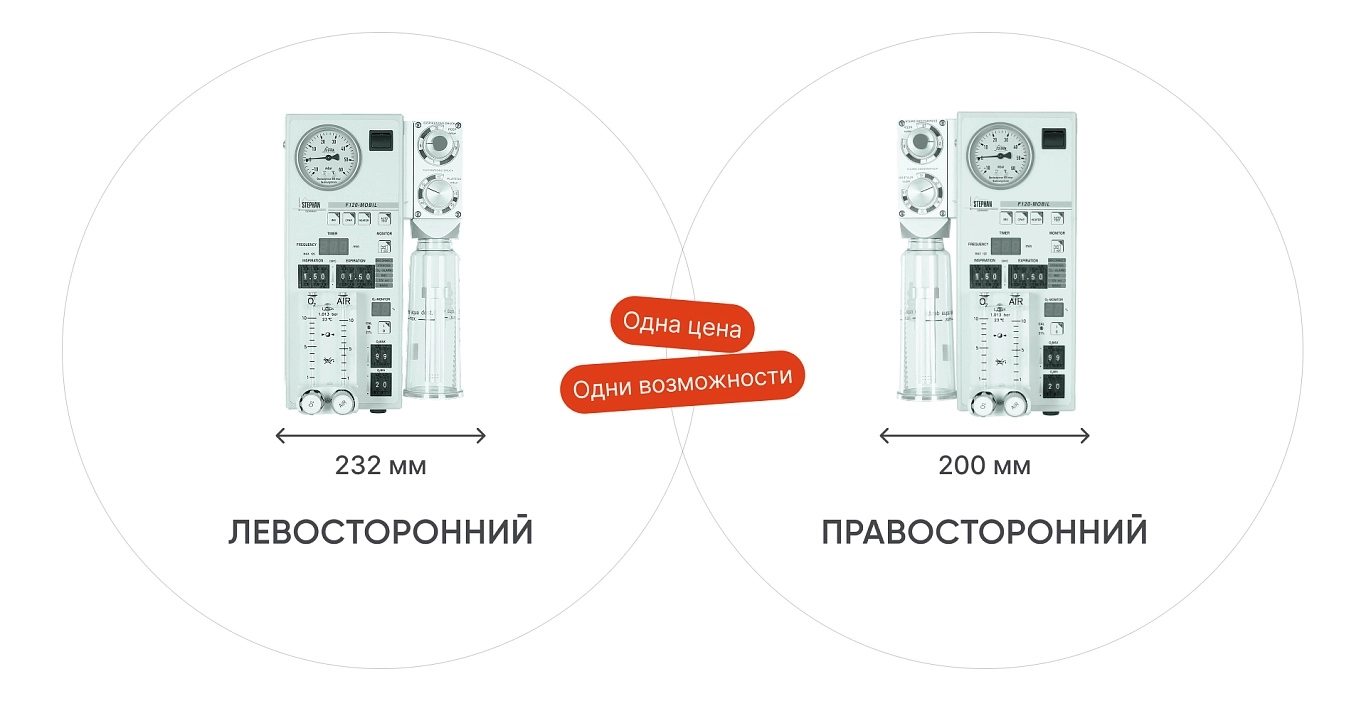 Левосторонний вариант удобнее использовать в машинах скорой помощи и с инкубаторами, а правосторонний подойдет специалистам, которые уже привыкли работать с таким расположением интерфейсов.