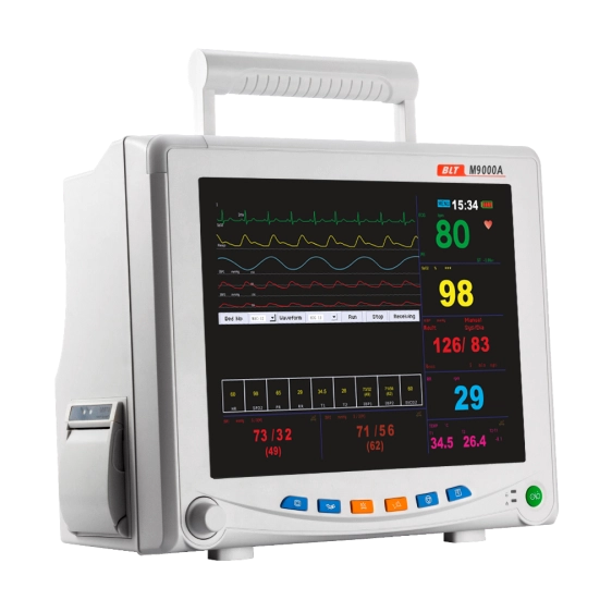 Монитор пациента оснащен ярким и контрастным 12-дюймовым дисплеем, на котором отображается системная и графическая информация (кривые), а также числовые значения измеряемых параметров. В нижней части экрана располагаются подсвечивающиеся кнопки быстрого доступа к часто используемым опциям. Данные монитора передаются на центральную мониторную станцию проводным или беспроводным способом (одновременно можно подключить до 66 мониторов).