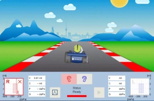 Тимпанометр touchTymp RaceCar — прибор для быстрой, легкой и точной тимпанометрии у детей в формате увлекательной игры.