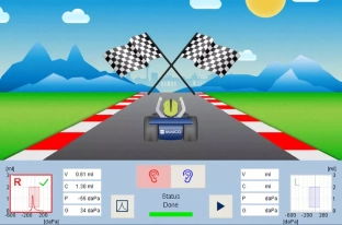 Благодаря анимации с гоночным автомобилем на дисплее аппарата ребенок остается сосредоточенным и меньше отвлекается. Это снижает вероятность нарушения герметичности между наконечником зонда и ухом, поэтому позволяет быстрее завершить процедуру тестирование среднего уха без необходимости проведения повторных исследований.