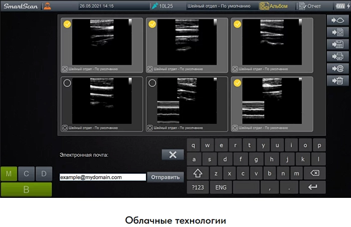 Сканер ультразвуковой диагностический СмартСкан 15 с сенсорным экраном 15,6 дюймов, углом обзора 175 градусов, разворотом корпуса на 360 градусов, голосовым управлением и возможностью автономной работы в режиме диагностики не менее 180 минут. Аппарат включен в реестр ГИСП и соответствует ПП №878.