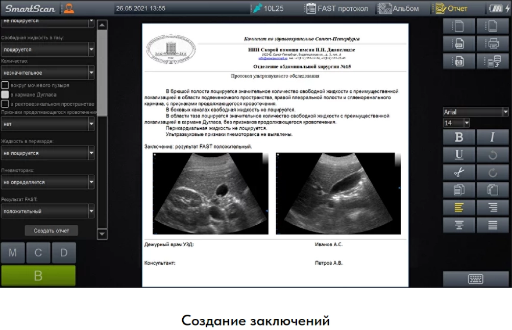 | Протокол | BLUE (сонография легких) , FAST (ургентная сонография) |
